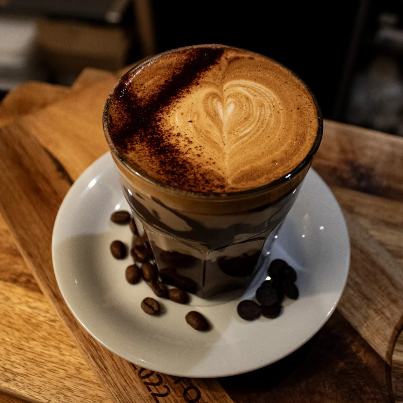 Espresso, steamed milk, thick foam topped with chocolate dusting.